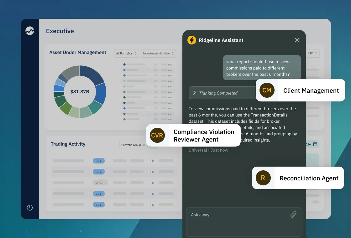 Ridgeline AI Agents are domain‑specific digital teammates that work directly in your existing workflows.